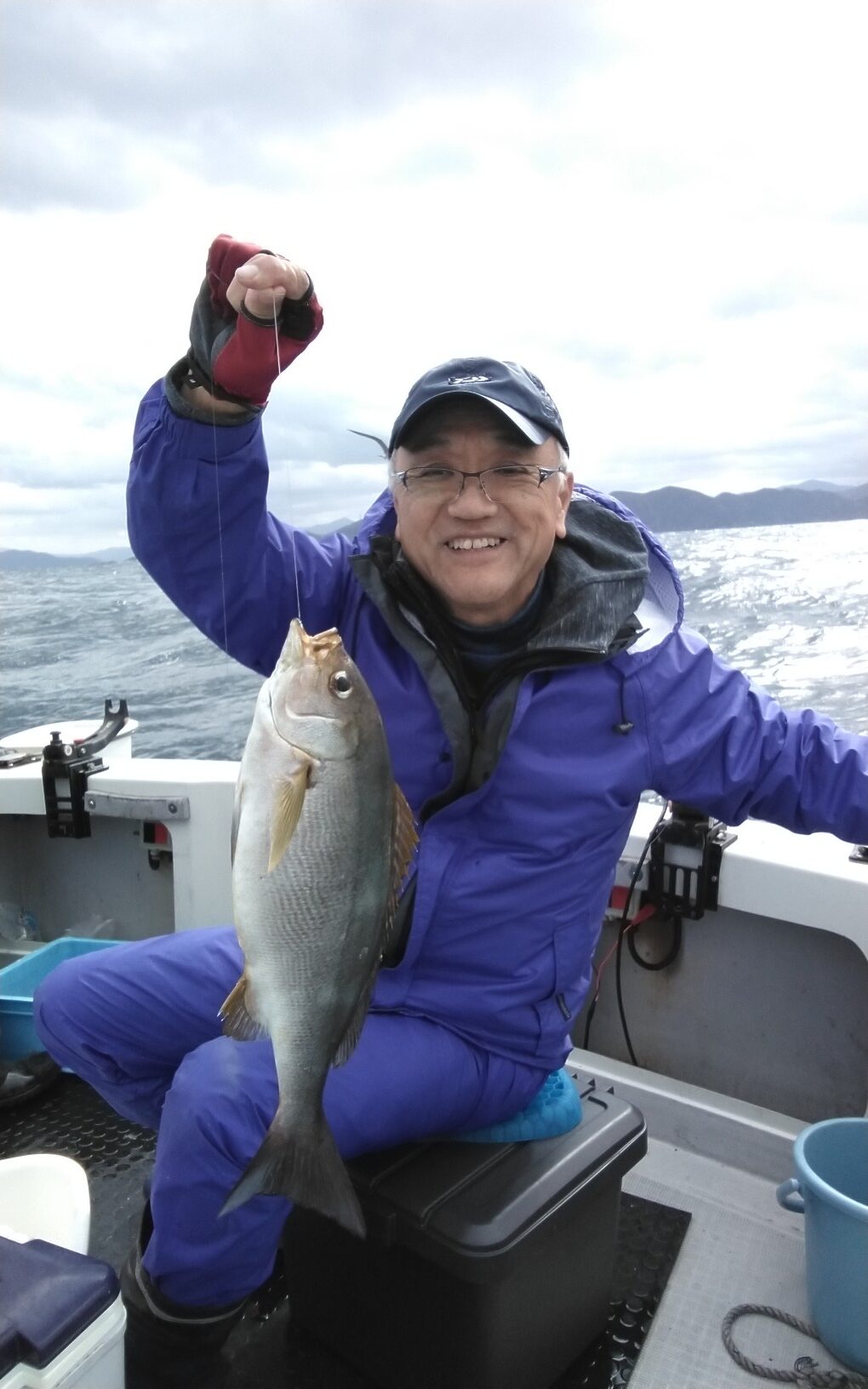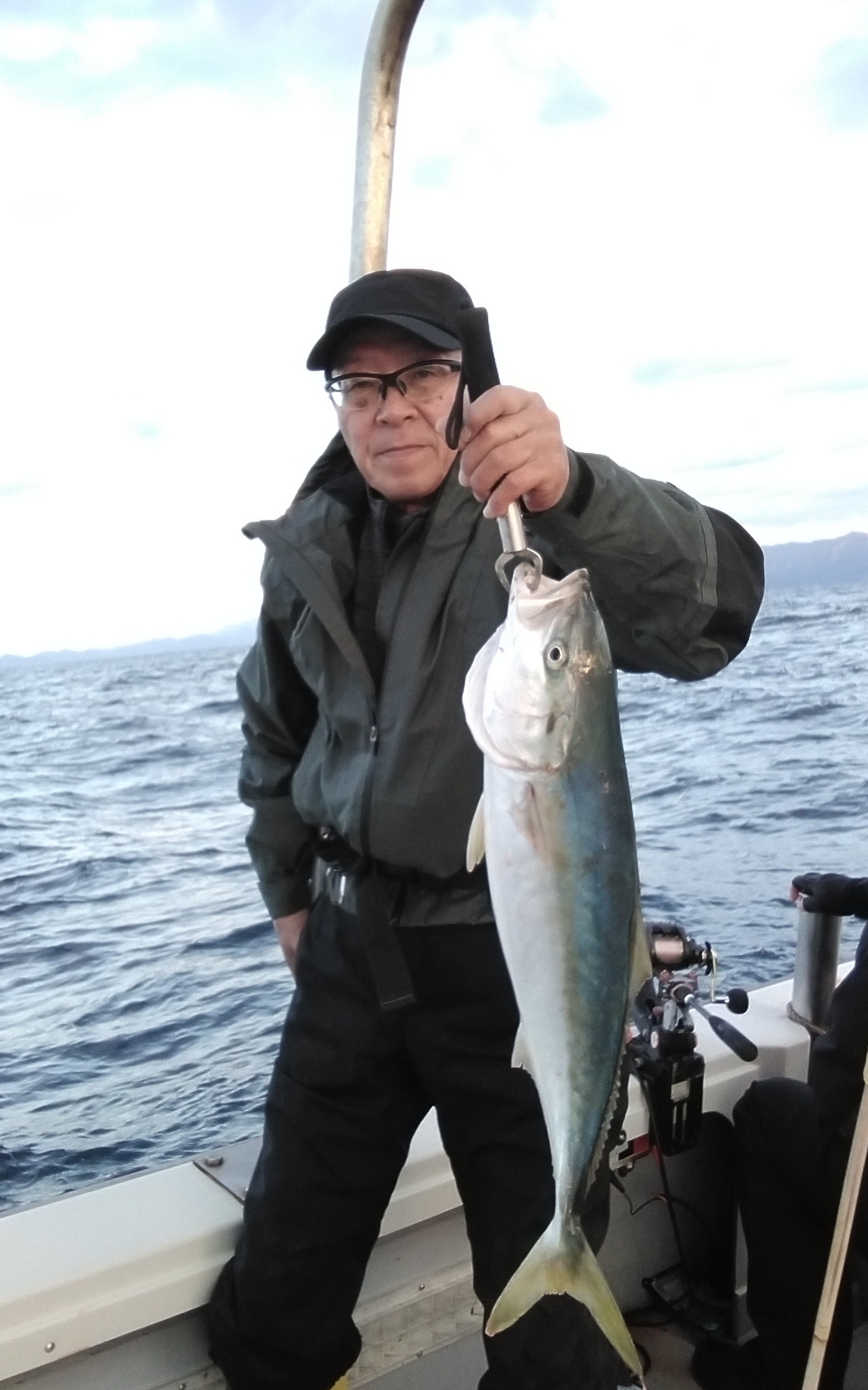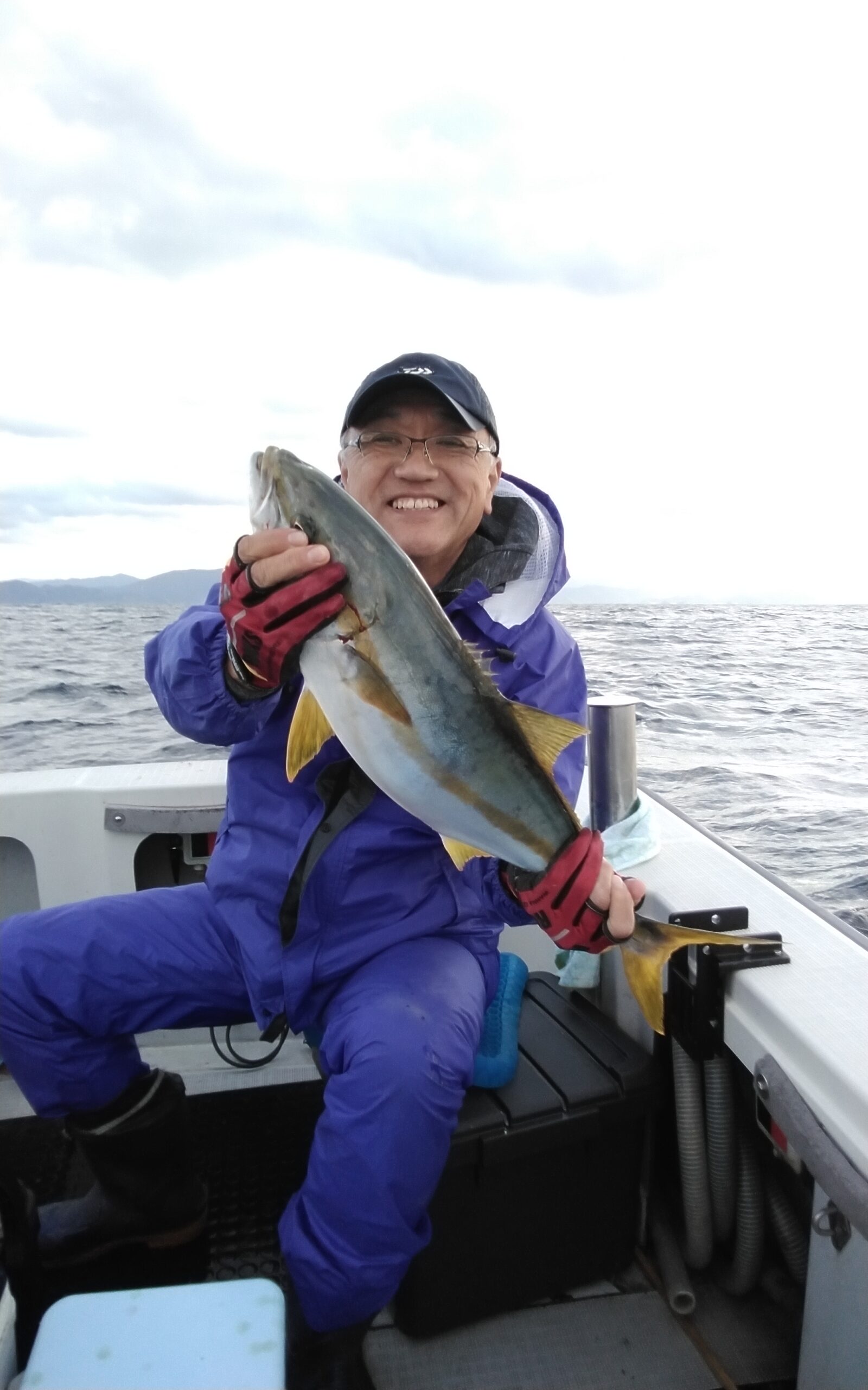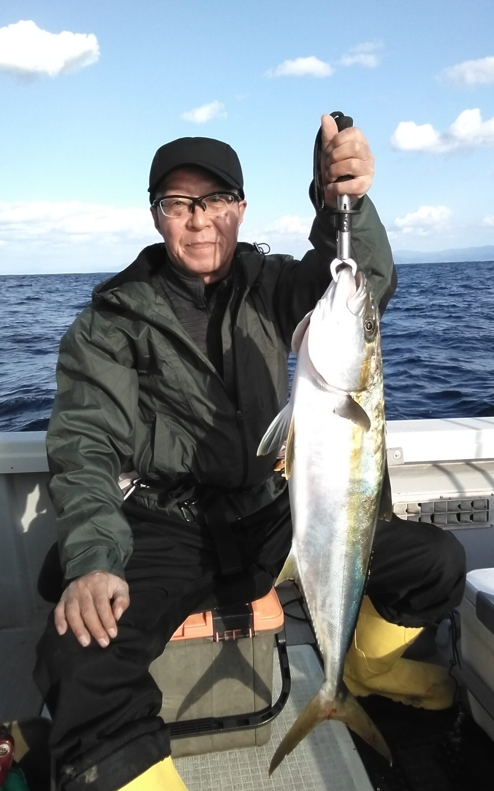 11月11日ふかせ釣りでヒラマサ79cm2匹、70cm2匹、タイ50~40cm10匹、ハマチ60cm2匹、イサキ40cm1匹でした 2025年11月11日 釣果情報上野勝 ふかせ釣り, イサキ, タイ, ハマチ, ヒラマサ 今日の釣行は、午前中はうねりが高いけど、だんだんと収まって来る、とのことで出港すると、ちょっと高く釣り辛い状態でしたが、流し入れて見ると一投目からアタリが有り、タイ50cm、40cm とヒットして来ました。波も少しは良く成り、沖へ移動してして、ヒラマサ、タイと、ポツ、ポツとヒットし、皆さんのクーラーに納まり、何とかお土産が出来ました。 いつもありがとう御座います