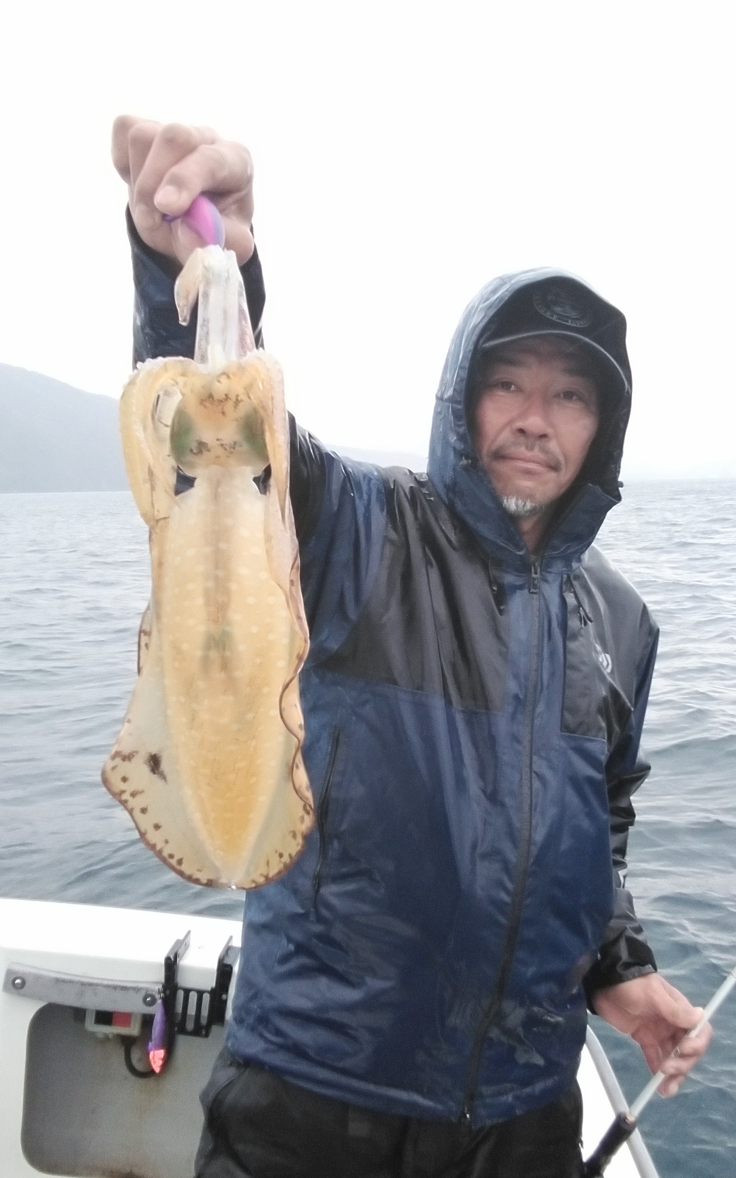 今日は、曇り空で強い南風が吹いたり、西風が吹いたり、クルクルと変わりで思った通り流れず大変でしたが、ポツリポツリとヒットして来ました。11時ごろから風はちょっと弱く成りましたけど相変わらず西風、南風と変わり、攻めたい所に中々入れず苦労しました。そんな中で皆さんの頑張りでキロ級が4ハイもゲット出来ました。  いつもありがとう御座います