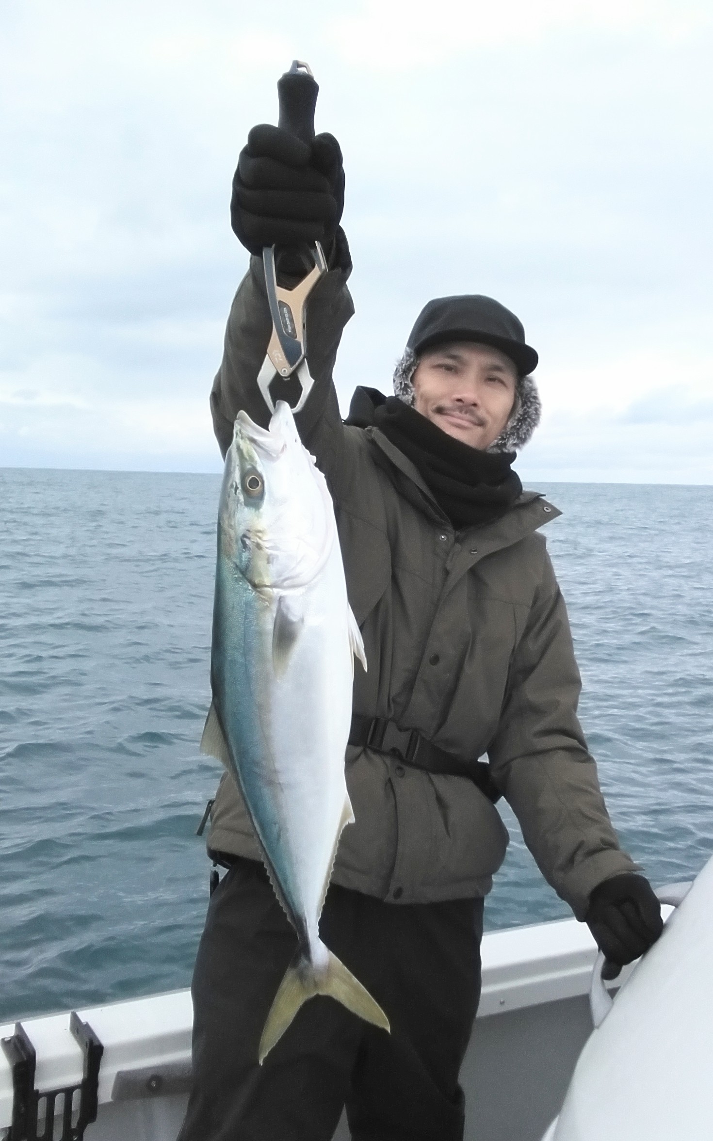 今日は南風で、沖からのうねりは高く、釣果はどうかな?と、ちょっと心配しながら、湾口近くに近付くと、既に6~7層が流して居りました。離して釣り始めると70オーバーサイズがヒット、その後にサゴシがヒット、メジロがヒットと、調子良く釣れたものの、そんなに甘くは有りませんでした。コッと当たった思った瞬間に、リーダーが切られてフワッと軽く成る事、二度三度、メーター超えを水面下まで寄せたが、バラして仕舞い残念、そんなこんなが有りましたけど、頑張って頂き、何とか、お土産が出来ました。 いつもありがとう御座います