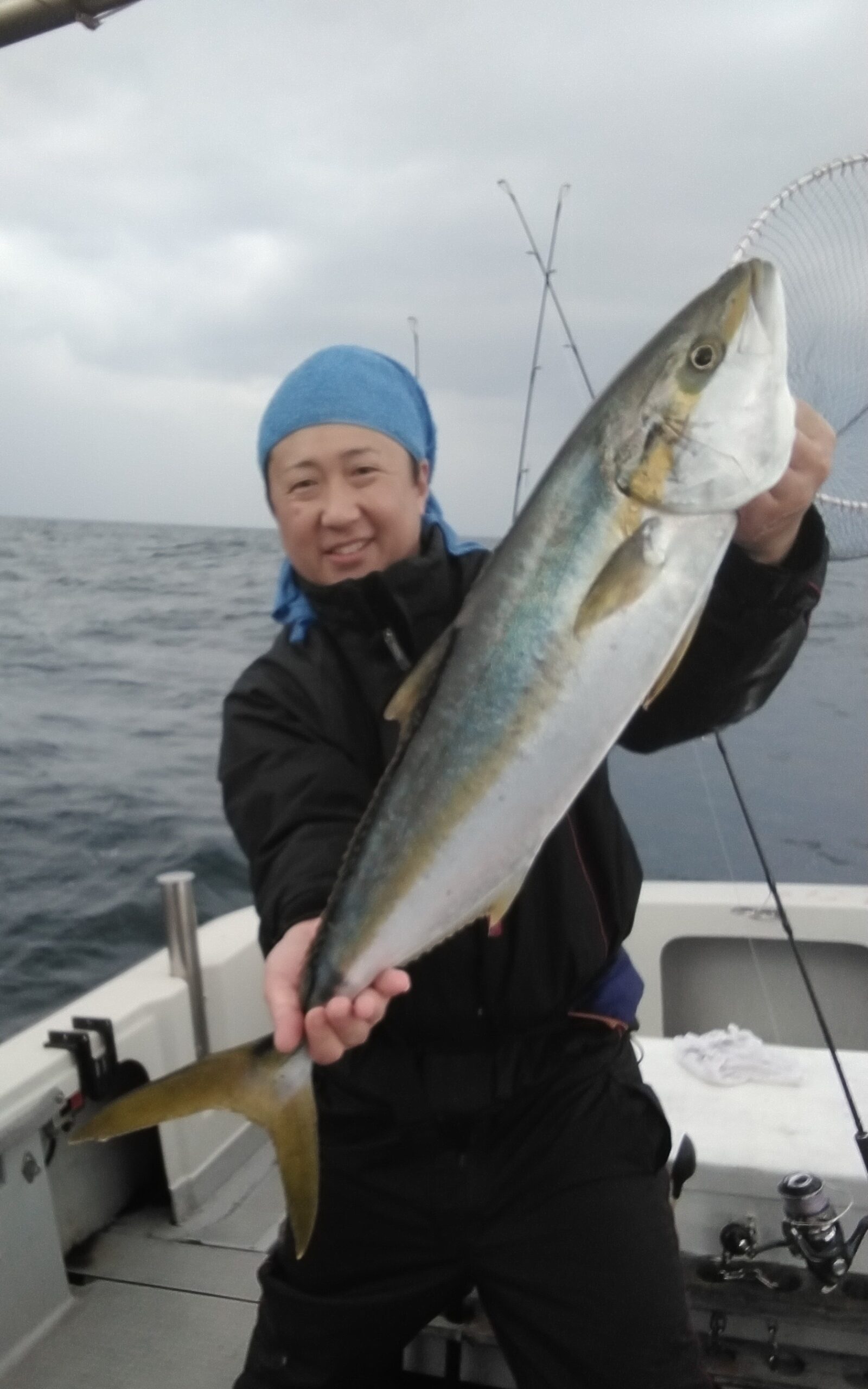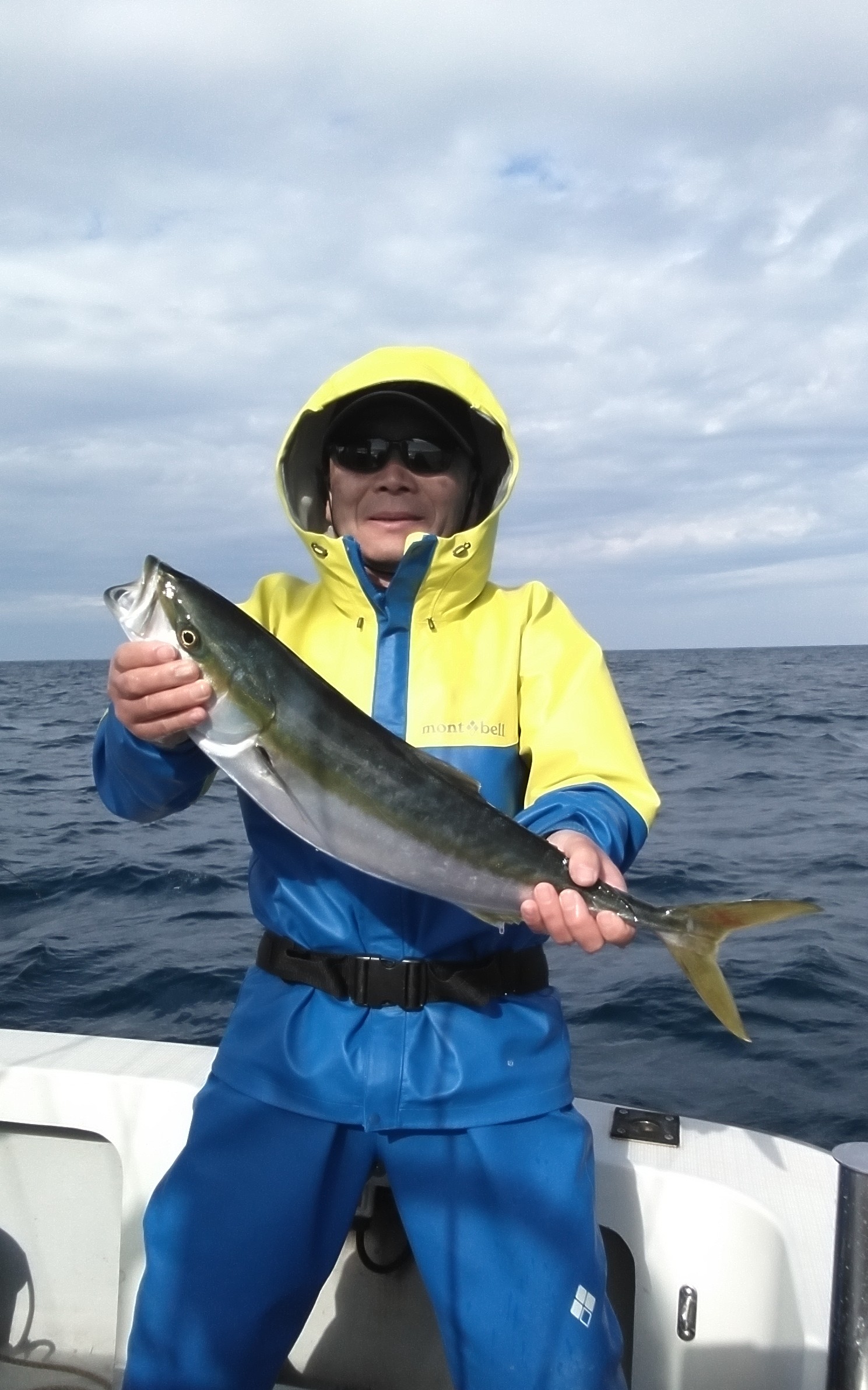 今日は、ウネリも高い中での釣りに成り、釣り始めるが、厄介な二枚潮で何処へ流れて行くのか?読みきれず、アンカーも二度三度と打ち変えるが、まともに流し込めず、テンビン釣りに切り替えて見たものの?さっぱりでした。午後過ぎてからふかせ釣りでタイがポツポツとヒット、暫くして、急に竿が舞い込み、グイグイと締め込みでラインが出て行く、そんな事二度三度と締め込みを楽しみながら、浮かせて姿を見せたのはヒラマサ、その後、直ぐに竿が舞い込み、重量感の有る締め込みでブリの80cm、又、直ぐにアタリが有り、ワラサが続きました。その間、2時間ほどの釣りで、アタリが止まり、エサは其のまま帰ってくる様に成り、沖からの波も高く白波が立ち、納竿する事に成りました。 お疲れ様でした