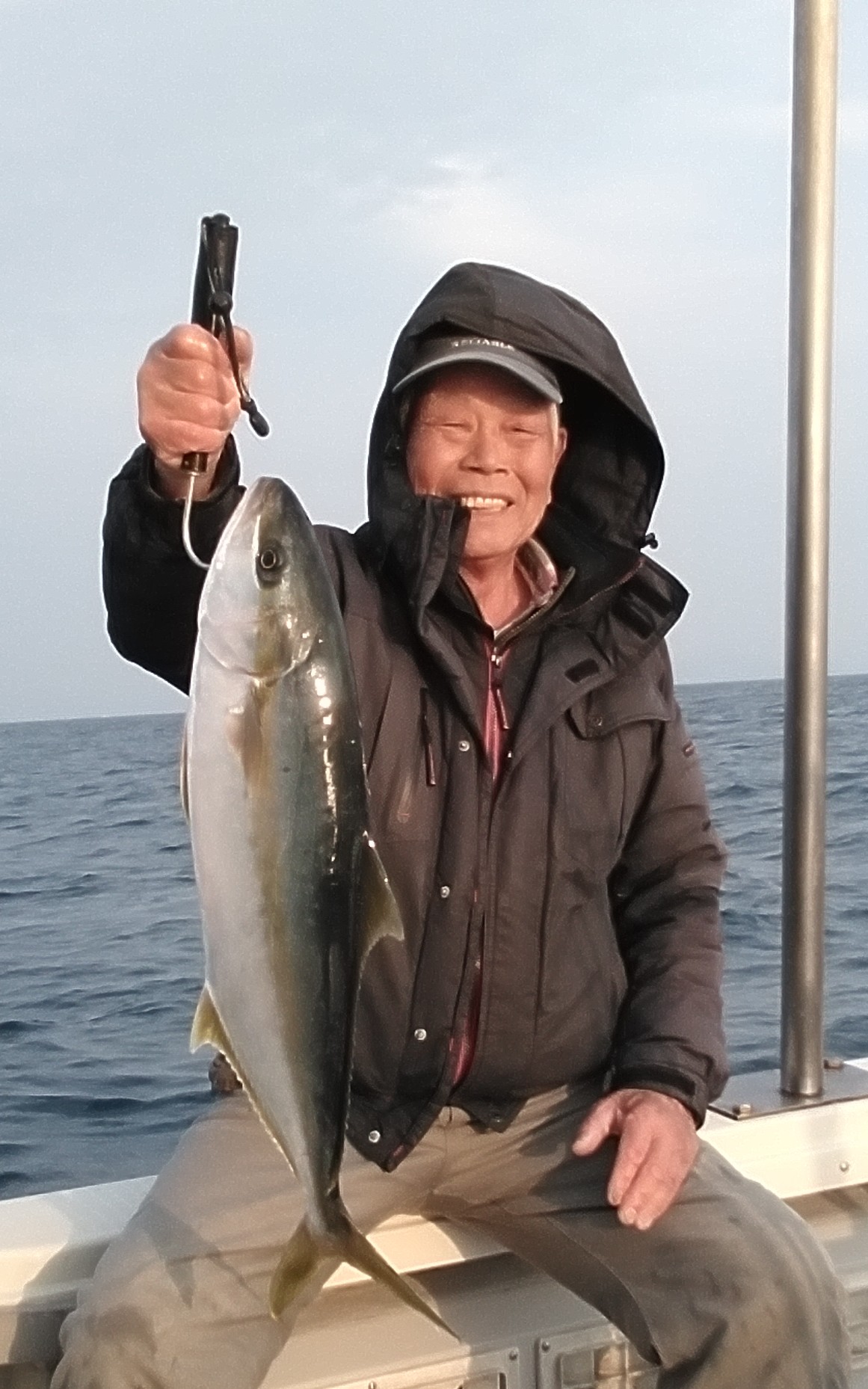 1月19日ふかせ釣りでブリ80cm1匹、ワラサ70cm4匹、ヒラマサ70cm1匹、ハマチ60cm1匹、タイ50~40cm7匹でした