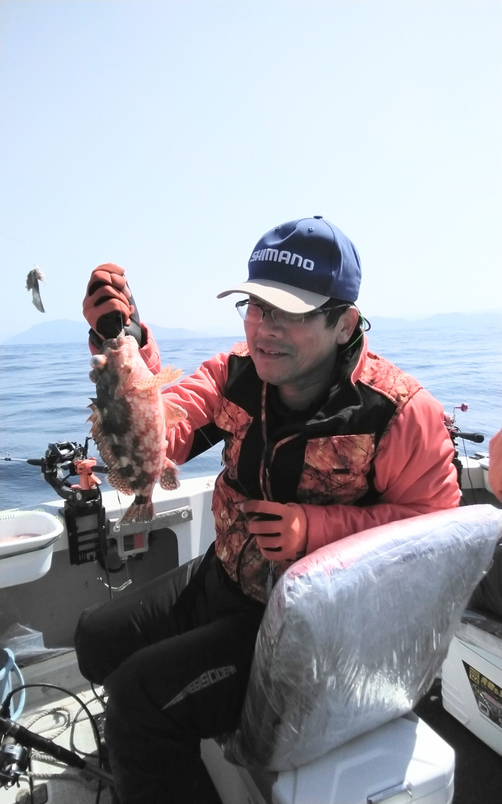 今日も、ふかせ釣りでタイ、青物狙いで出港しましたが、前日と同様で二枚潮で、隣の方と絡んで上がって来る状態なので、根魚釣りの、テンビン、胴突き釣りに切り替えて頂き、カサゴ、アコウの、お土産釣りに成りました。 誠に申し訳ございませんでした
